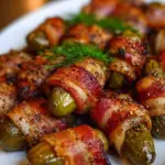 This delicious creation encapsulates all the best parts of snacking: salty, tangy dill pickles enrobed in a blanket of delectable bacon, creating a symphony of taste and texture. Your mouth waters as the first bite reveals the robust crunch of the pickle, the succulent richness of bacon melding perfectly. Each piece bursts with flavor, joyously leading to the next as laughter and conversation unfold around your dinner table or during a lively gathering. This dish isn’t just food; it’s an experience, one that brings smiles and satisfaction in every bite.