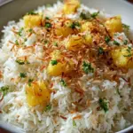 The aroma alone captivates as it wafts through your kitchen, blending notes of coconut and pineapple into an irresistible invitation to indulge. Resisting this creamy, tropical dish feels nearly impossible, especially when servings are nestled warmly in your favorite bowl, crowned with bright green herbs. It beckons not only as a side but also as a centerpiece for any meal, enchanting those fortunate enough to share in its bounty. Whether you’re reminiscing about a summer vacation or simply yearning for a taste of bliss, Creamy Coconut Pineapple Rice creates an experience that nourishes both body and soul.