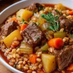 The cool breeze of autumn brings with it a poignant yearning for warm, hearty meals that nourish not only the body but also the soul. Picture a vividly textured bowl filled to the brim with rich beef, tender vegetables, and satisfying barley. As you take the first spoonful, the deep aroma of savory broth wafts up to greet you, teasing your senses with promise. A blend of sweet carrots, earthy potatoes, and robust beef meets the thick and chewy barley, creating a soulful harmony that comforts every corner of your being. This isn’t just a meal; it’s a warm embrace on a chilly evening, a moment where each bite tells a story of family dinners and cozy gatherings. It’s pure comfort food, irresistible in its allure—the kind of dish that invites you to linger at the table, savoring every last drop.