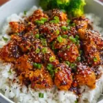 Imagine sinking your teeth into a bowl of warm, glistening chicken, perfectly sticky with a sweet and savory sauce, cradled atop fluffy jasmine rice. The tantalizing scent of garlic mingles with the cozy aroma of honey and soy, inviting you to take that first tantalizing bite. Each mouthful bursts with flavor; tender chicken thighs mix harmoniously with the creamy rice, while the toasted sesame seeds add a satisfying crunch, balancing out all the delicious layers. This isn’t just a meal; it’s an experience that wraps you in its comforting embrace, making you feel right at home.