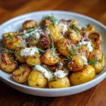 Once the potatoes are roasted to perfection, remove them from the oven and let them cool slightly. Serve them warm, topped with generous dollops of creamy ricotta cheese. The ricotta adds a rich, velvety finish that balances the savory flavors beautifully. It’s like a little cloud of happiness on your plate!