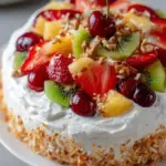 A tropical cheesecake salad that combines creamy textures with fresh fruits for a refreshing dessert experience.