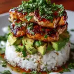 Imagine a warm summer evening, the sun dipping below the horizon, leaving a soft golden glow. The enticing aroma of grilled chicken fills the air, mingling with the zesty scent of freshly squeezed lime and sweet honey. You hear the sizzling sound of marinated chicken meeting a hot grill, creating a symphony of flavors that promise a culinary adventure. Each bite of Honey Lime Chicken & Avocado Rice Stack transports you to a sun-kissed beach, surrounded by palms swaying gently in the breeze, invoking a sense of joy and relaxation that only good food can provide.