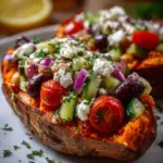 Mediterranean Stuffed Sweet Potatoes weave together flavors and textures, creating a heartwarming meal that feels both indulgent and nourishing. As you bring this recipe to life, you invite the essence of the Mediterranean into your kitchen—a realm of vibrant ingredients, colors, and tastes. Whether you serve them for a special gathering or enjoy them during a cozy night in, these stuffed sweet potatoes promise comfort and joy with every delicious bite. So roll up your sleeves, and let the aroma of roasted sweet potatoes and fresh herbs lift your spirit and tantalize your appetite. You’ll soon find yourself dreaming of the next time you can make this enchanting dish again!