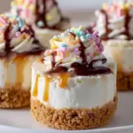 Delight in these creamy, bite-sized no-bake mini cheesecakes, featuring a crunchy graham cracker crust and customizable toppings.