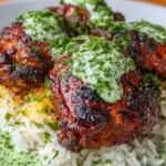 As you approach your meal, you’ll notice the crispy golden skin of the chicken thighs beckoning you closer. The crunch gives way to tender, juicy meat, incredibly rich in flavor thanks to a spicy yet harmonious blend of spices. Accompanying this marvel is a fluffy bed of rice, perfectly cooked and infused with the essence of garlic and chicken broth. The climax? A velvety green sauce that dances with a burst of freshness—each spoonful capturing the bright notes of lime, jalapeño, and garden herbs. This dish stands ready to satisfy your cravings, transform your gatherings, and earn a permanent spot in your recipe repertoire.