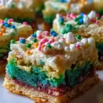 As you remove these colorful creations from the oven, the golden edges tantalize the senses, beckoning you to dive in. The vibrant layers form a delightful surprise within, bursting with flavor and fun. Each mouthful delivers a crackle of excitement, followed by the smooth creaminess of the buttery dough. Topped with a soft frosting or cheerful sprinkles, they become an irresistible treat that captivates both young and old alike. These rainbow bars transform any gathering into a celebration, encouraging laughter and shared moments with friends and family.
