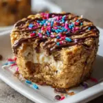 Delicious sugar cookie protein baked oats topped with sprinkles